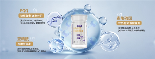 三者协同,形成 “促生(AKG)- 保护(麦角硫因)- 增效(PQQ)- 焕新(亚精胺)”的完整闭环,使抗衰效力呈几何级增长。