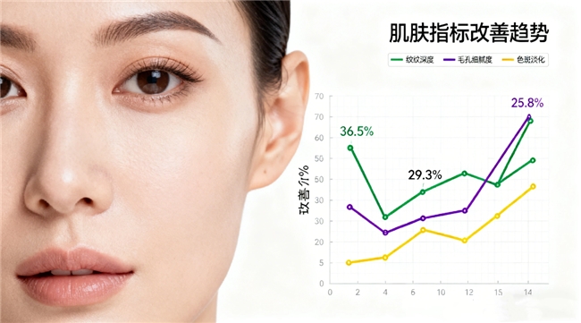 ② 深度抗皱,效果显著:临床数据显示,皮肤紧实度增强19%,皱纹深度(特别是眼周、额纹)改善达36.5%,实现轮廓紧致与细腻平滑。