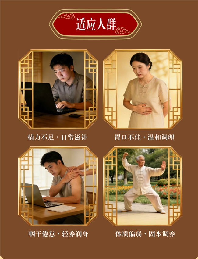 这类人群更关注“干净配方”和使用门槛。无额外蔗糖添加,整体更清爽;同时采用小包装设计,食用量更好控制。无论是直接吃、泡水还是搭配日常饮食,都比较方便,适合刚开始尝试滋补的人群。